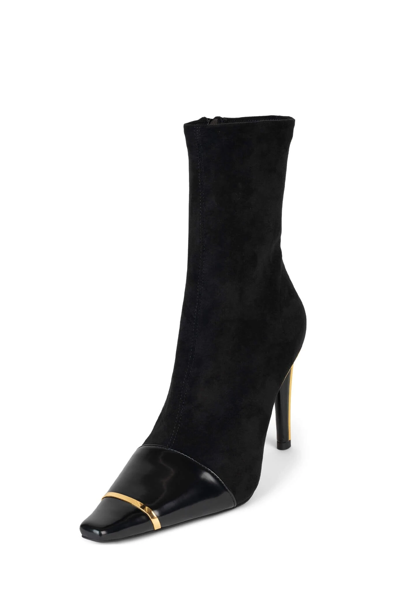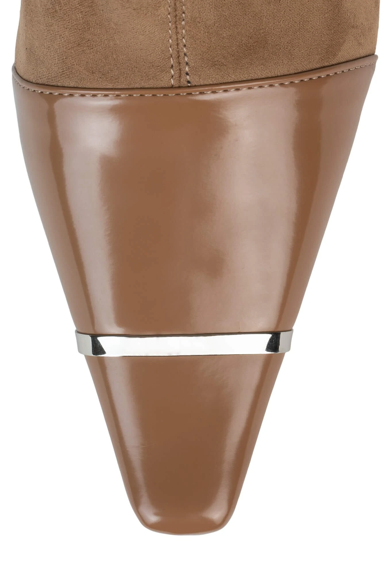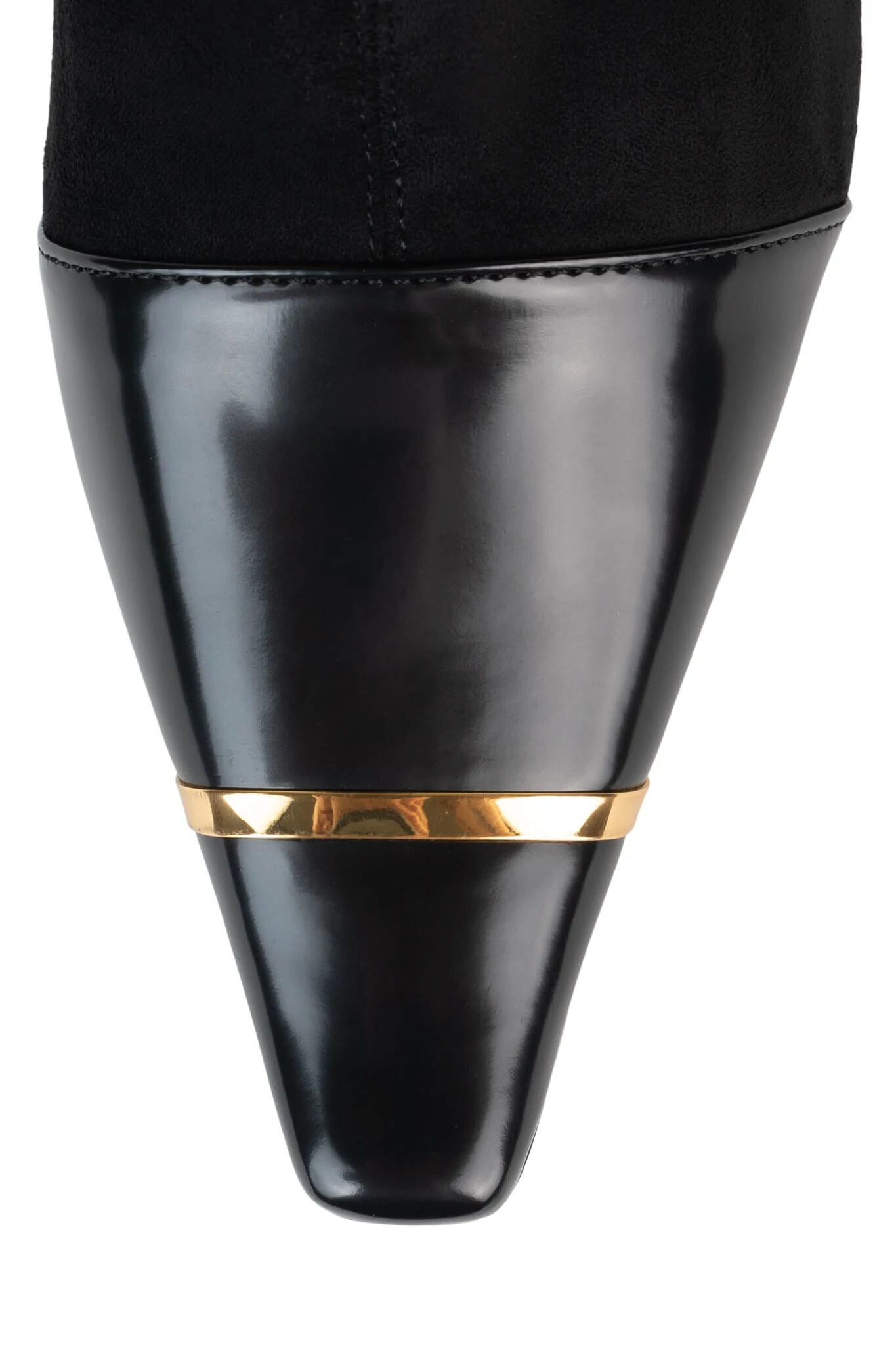 Mid-calf stiletto pointed-toe boot with metal contrast