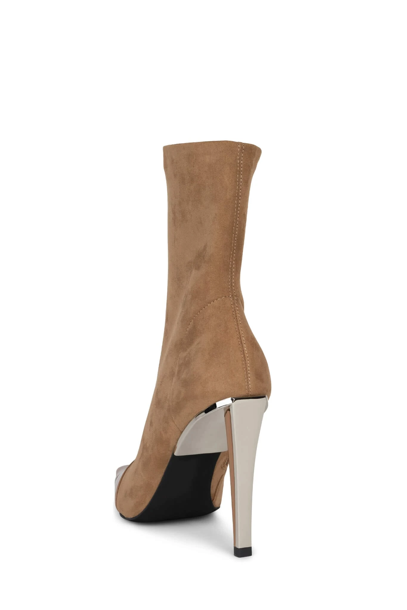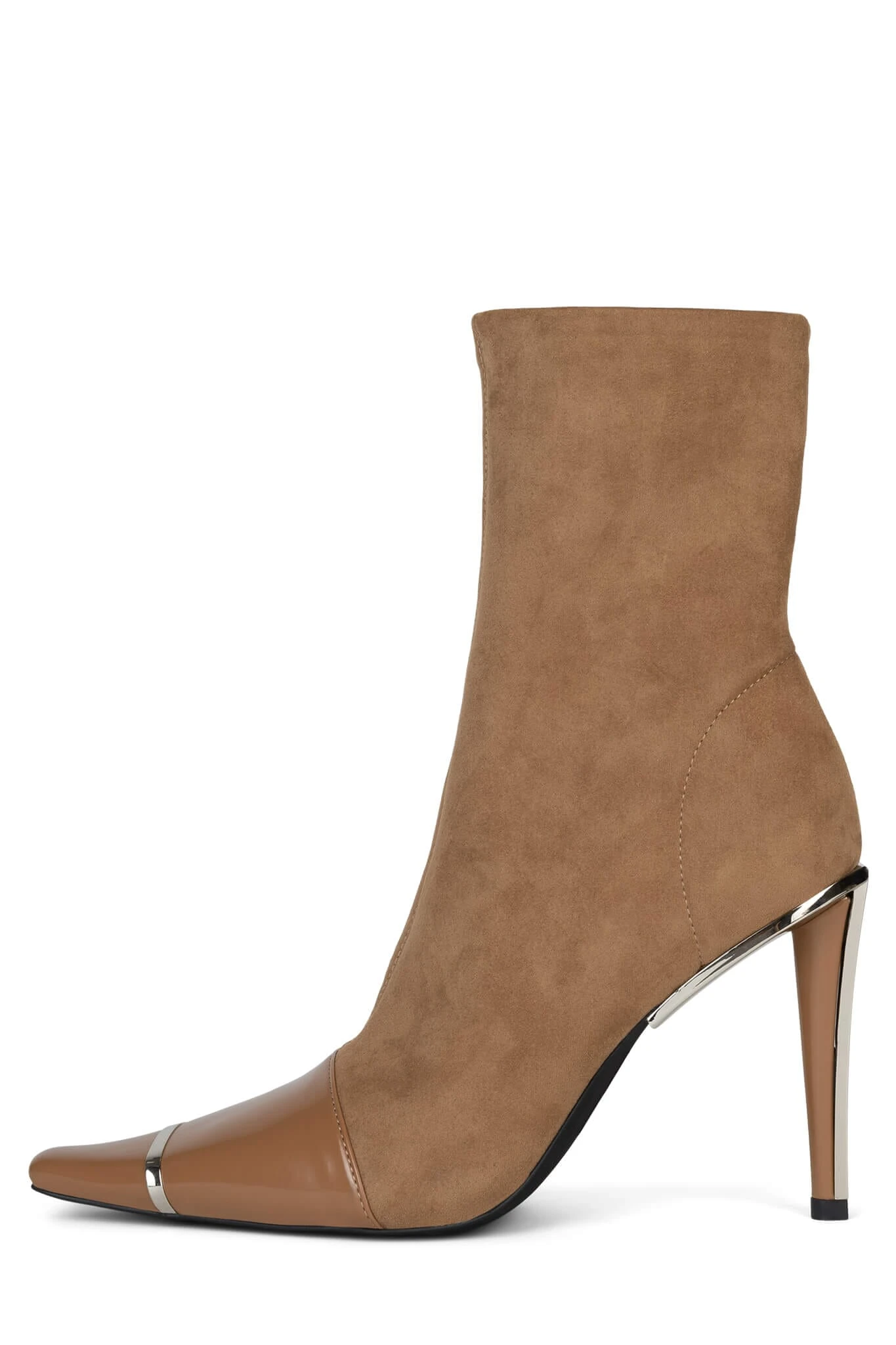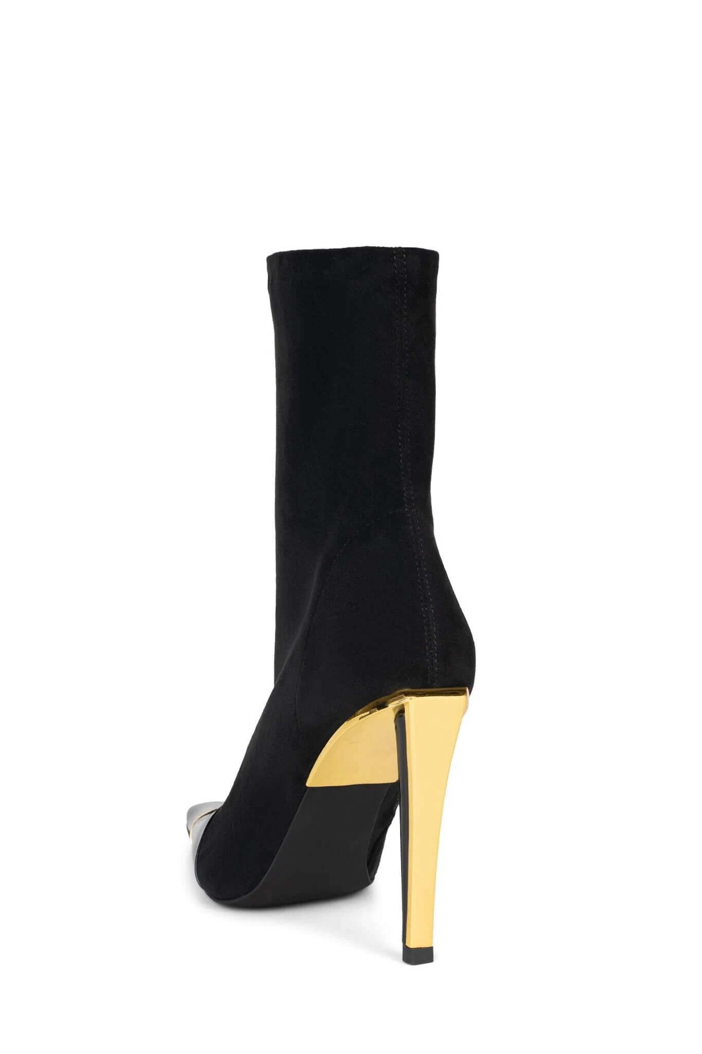 Mid-calf stiletto pointed-toe boot with metal contrast