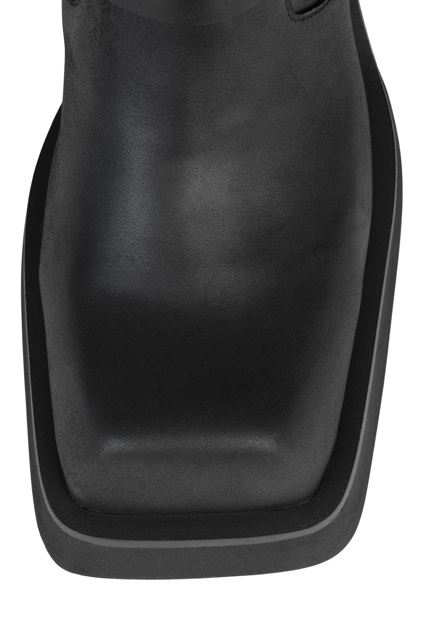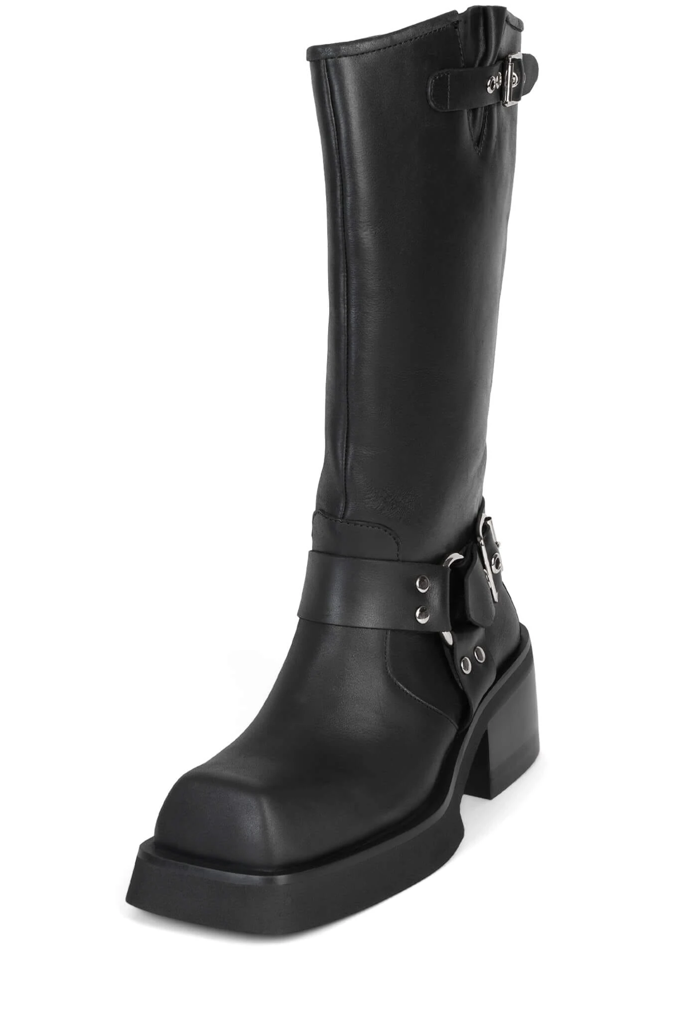 Knee-high square-toe moto boot with harness detail