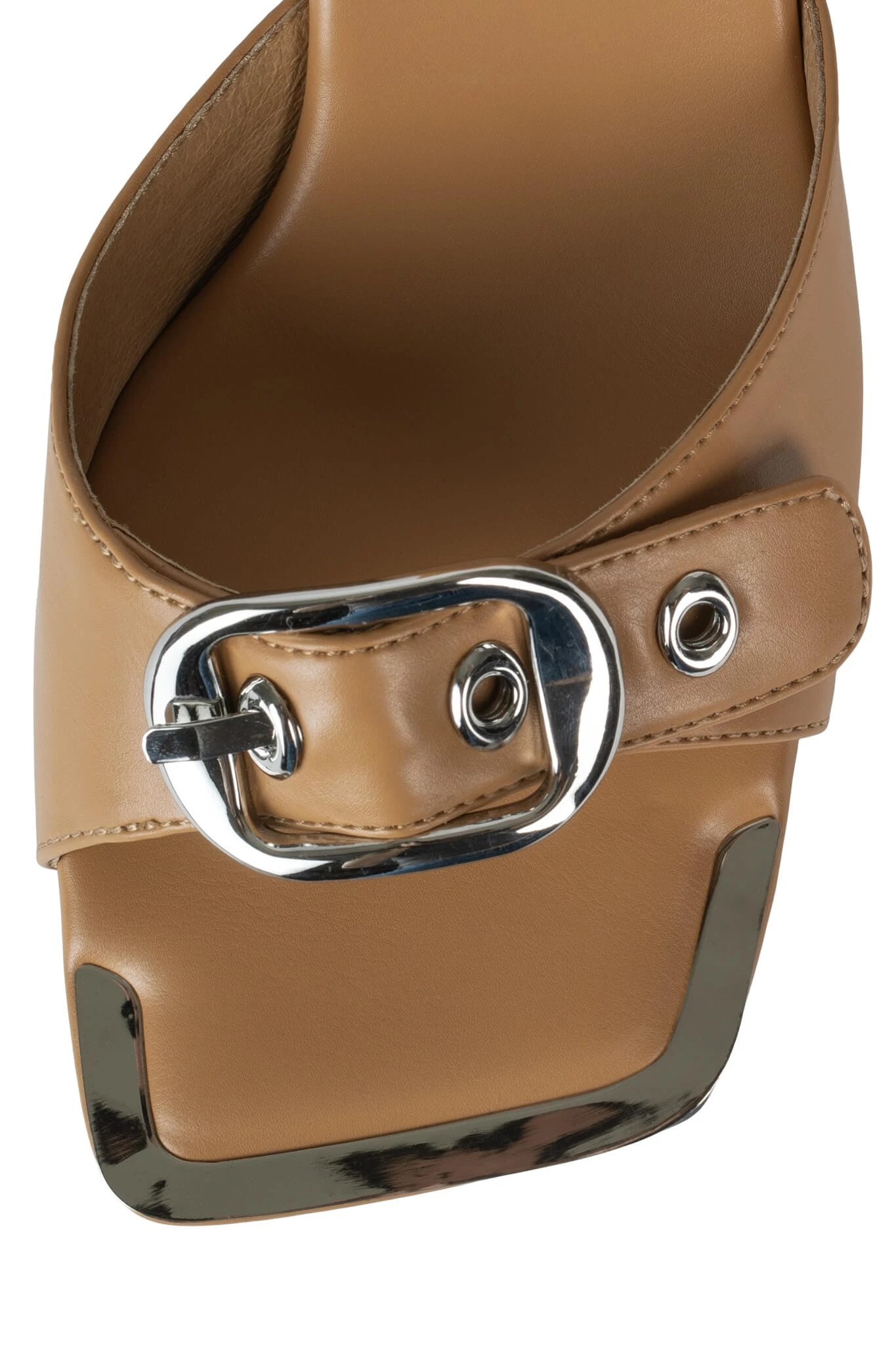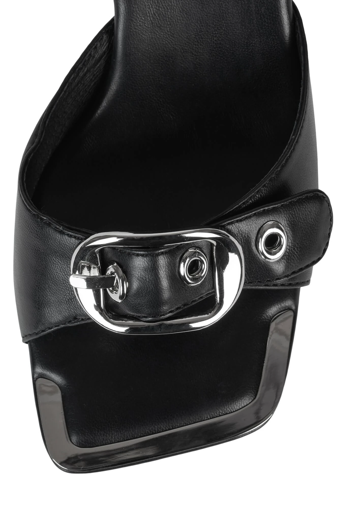 Square-toe heeled sandal mule with buckle detail