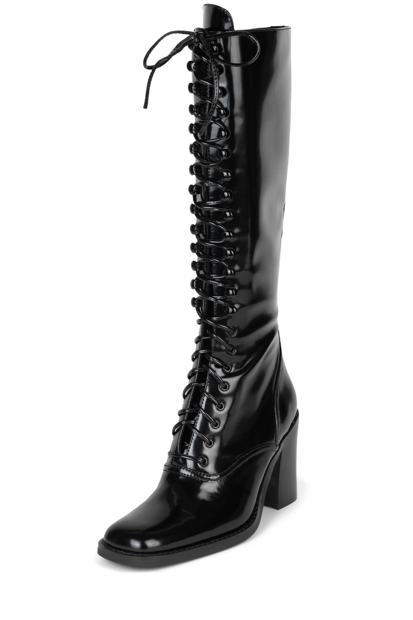 Lace-up knee-high heeled boot
