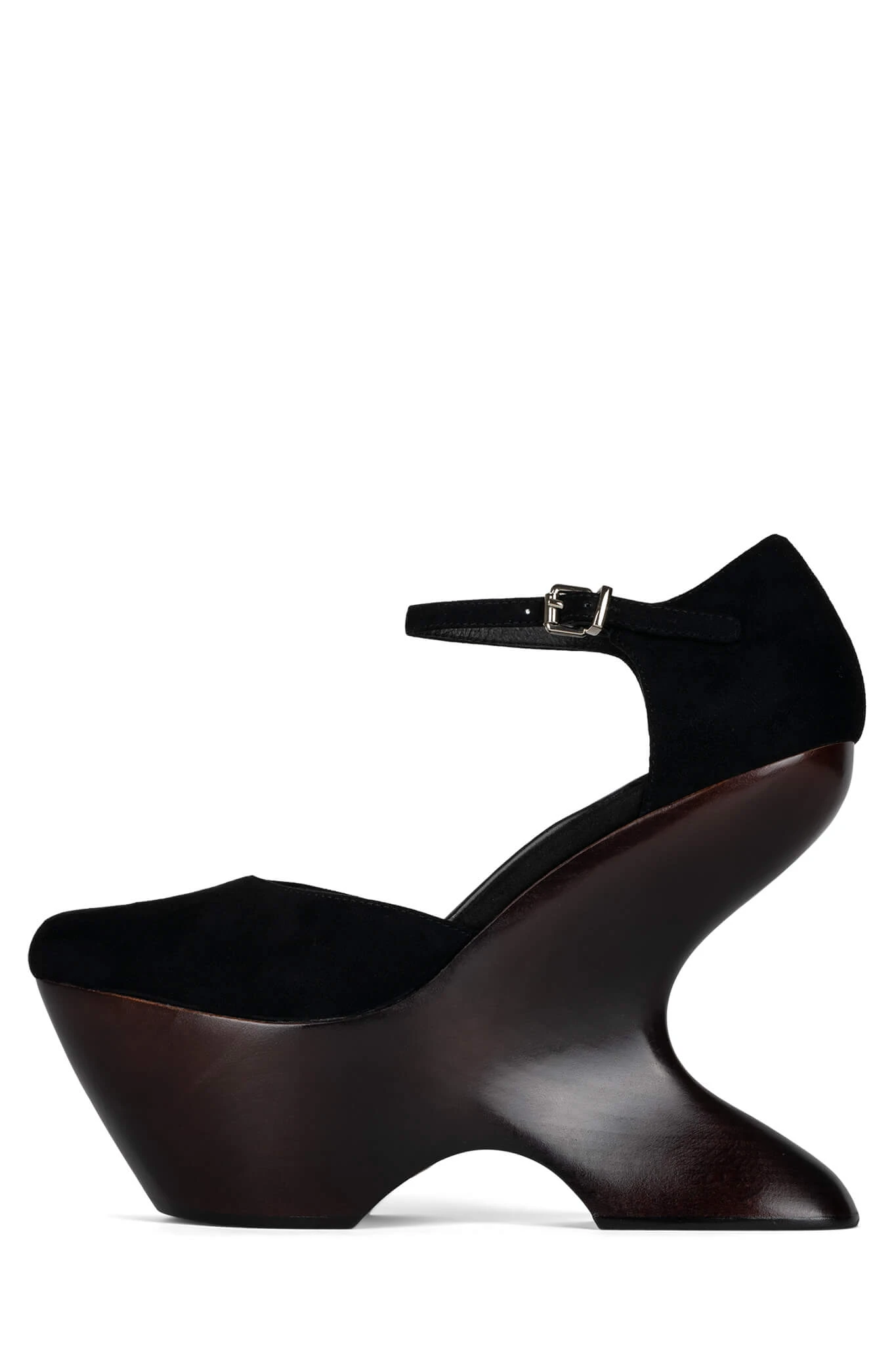 Platform Mary-Jane pump with a sculptural wooden wedge