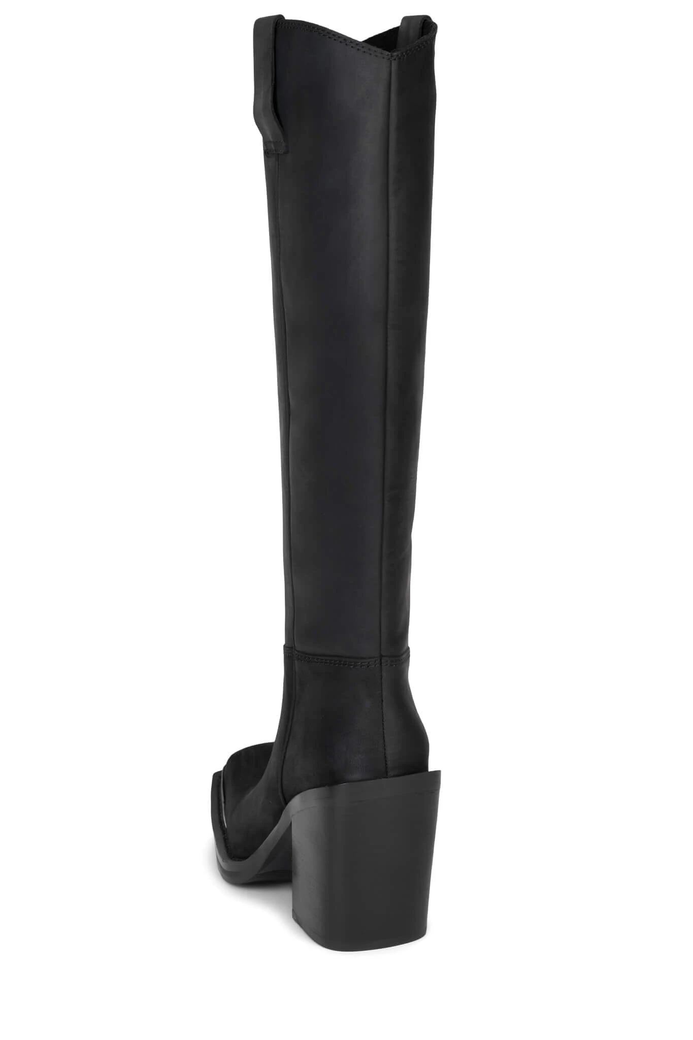 Western-inspired knee-high heeled boot with metal-rand