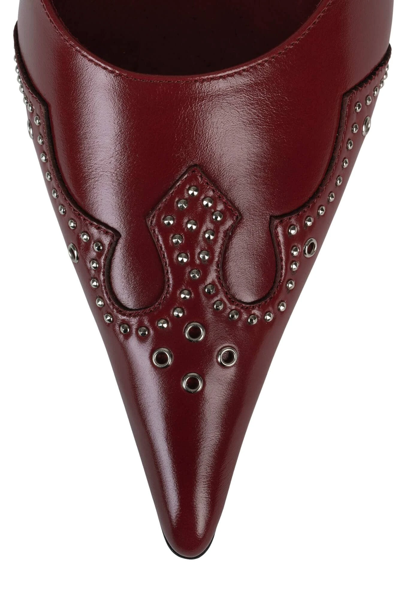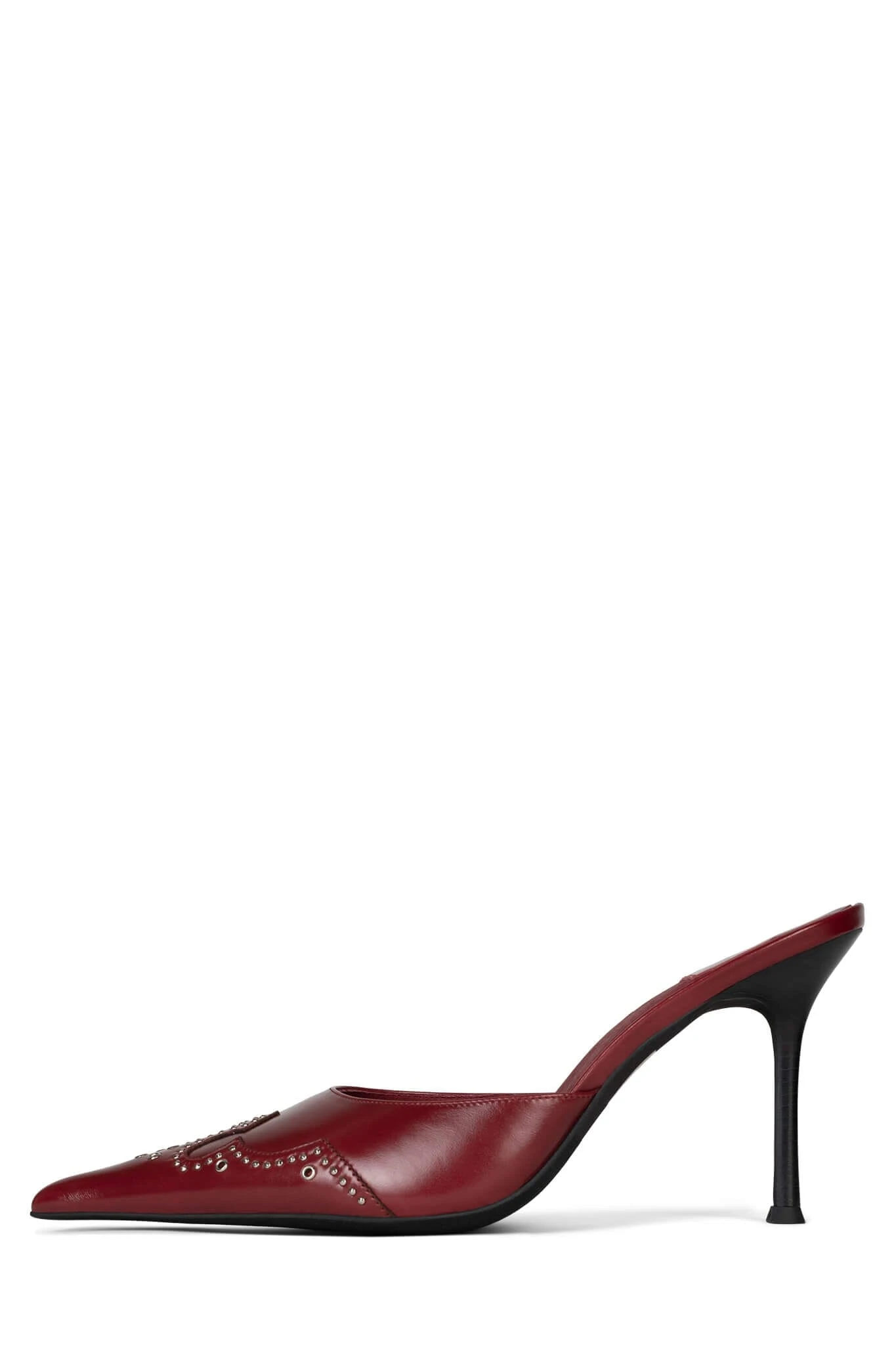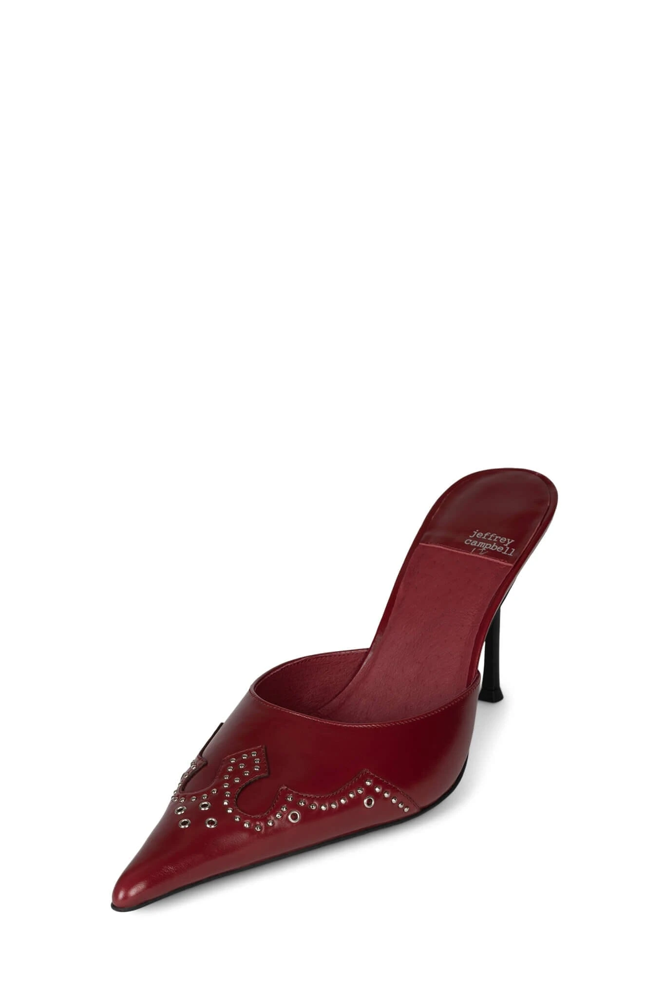Our BITE-ME pointed-toe stiletto mule with western motif, now offered in extended sizing