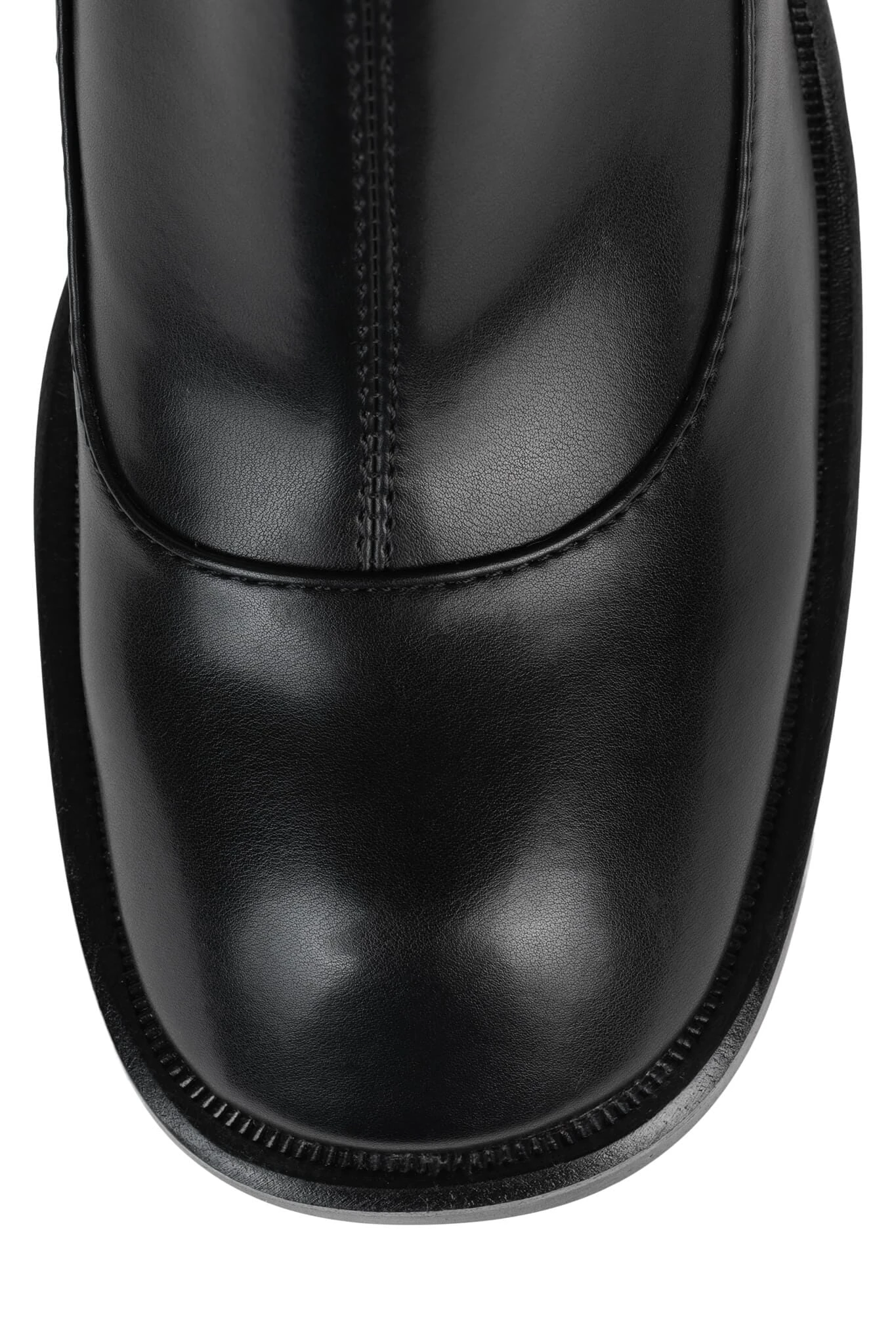 - Black Shiny: Synthetic Upper, Leather / Fabric Lining, Synthetic Sole