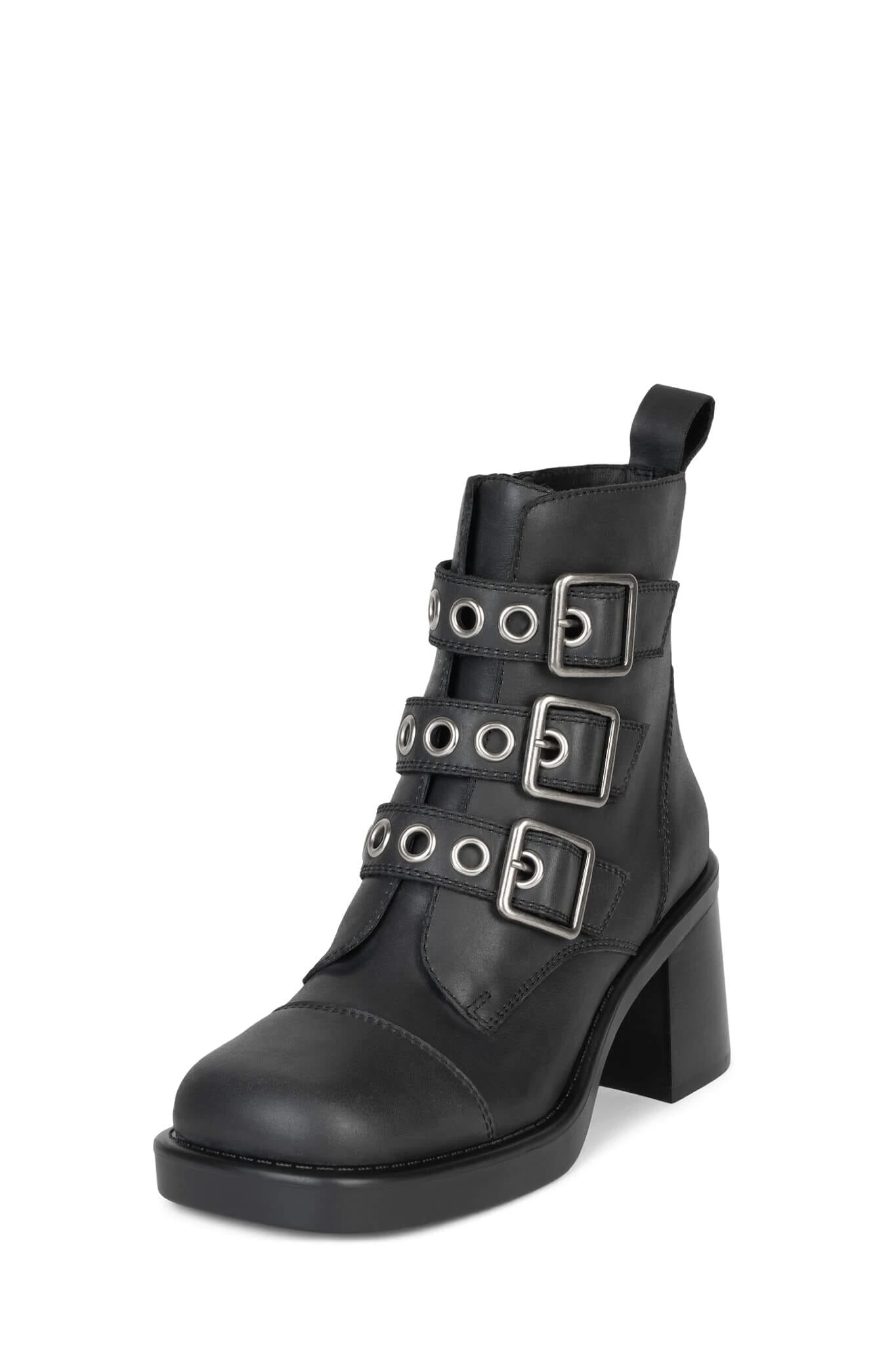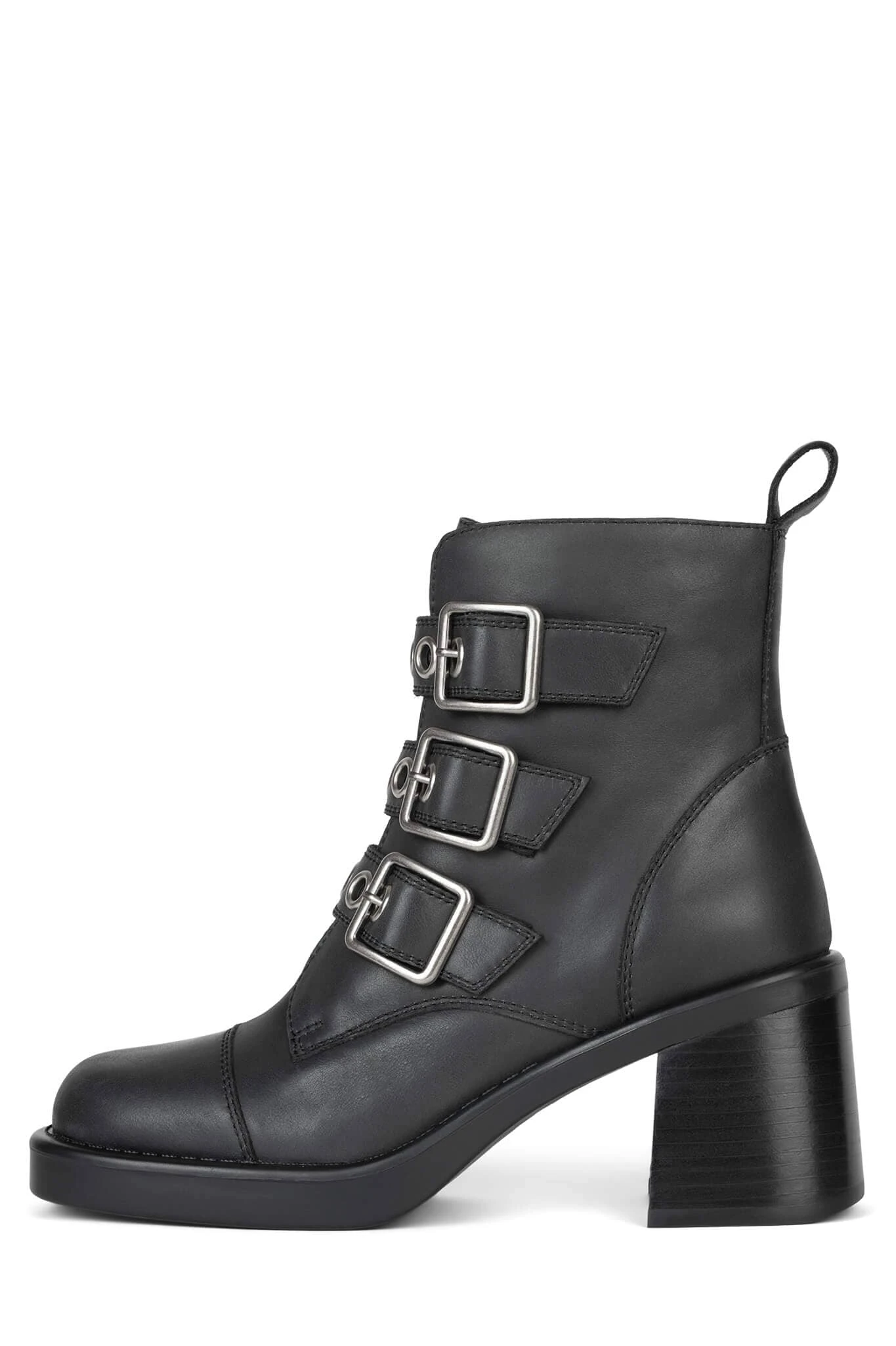 Heeled ankle boot with buckle detail