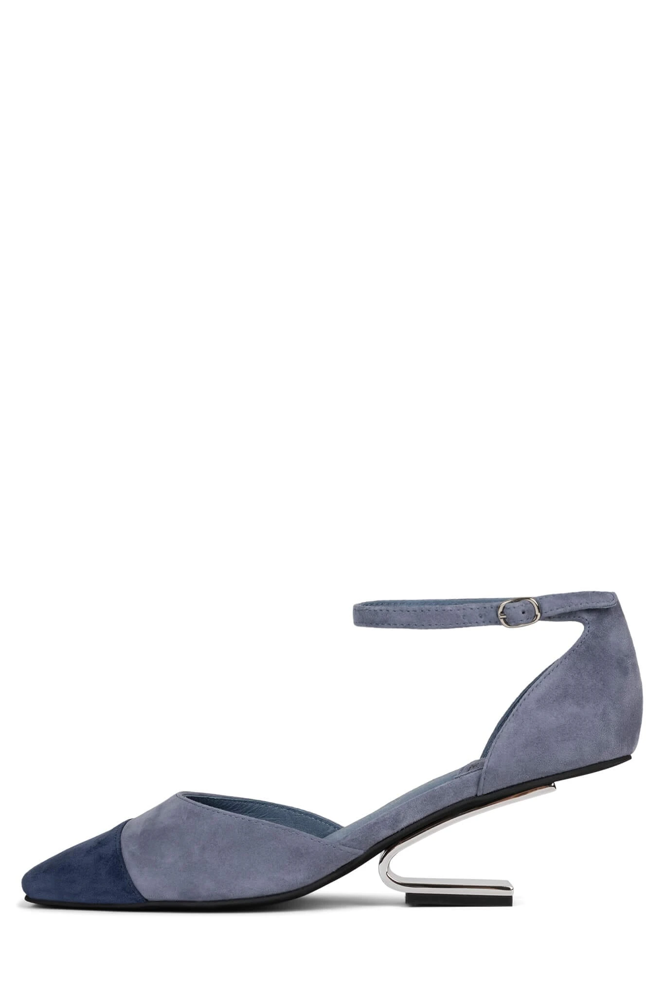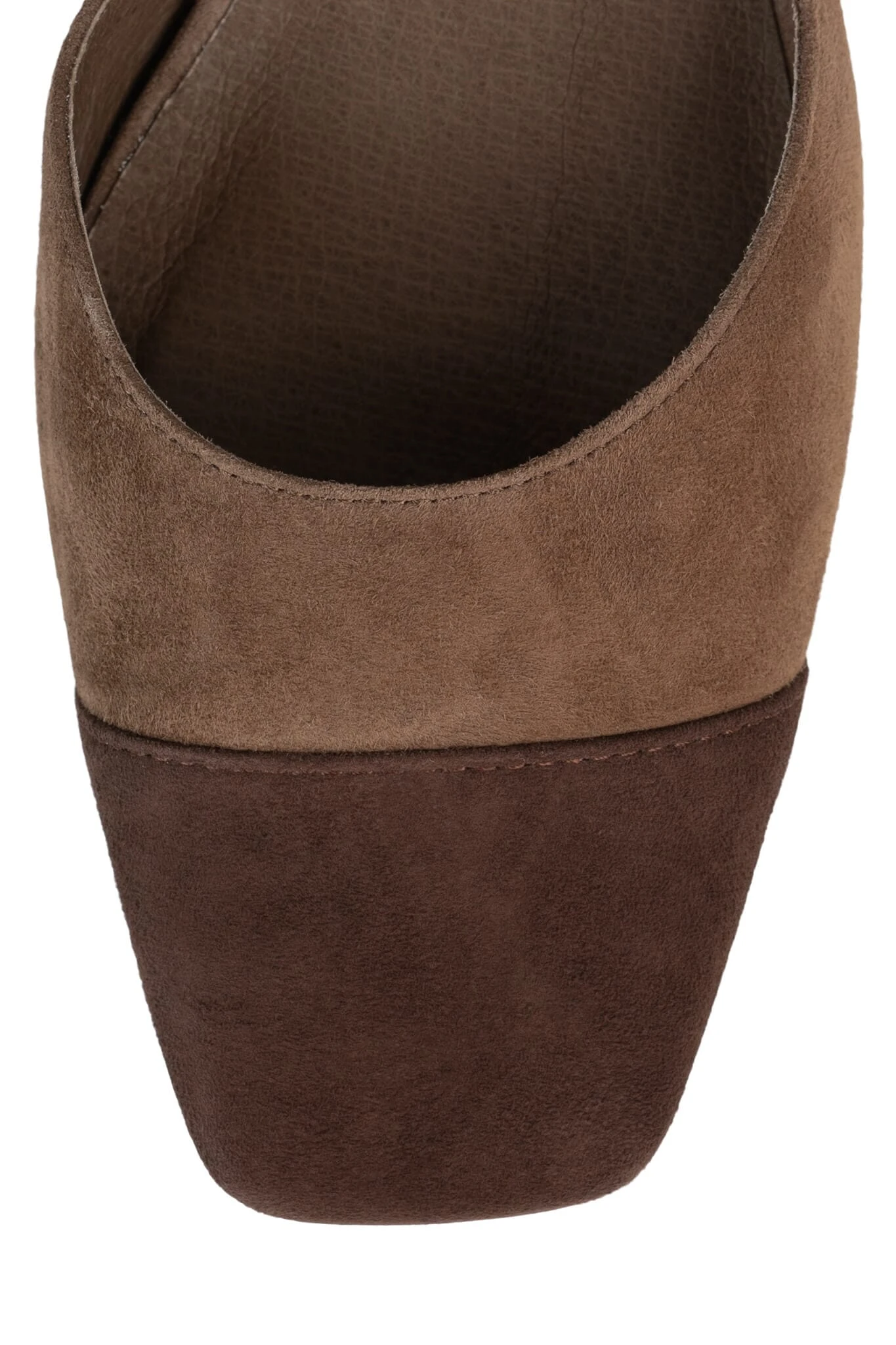 d’Orsay square-toe pump with sculpted kitten heel and ankle strap