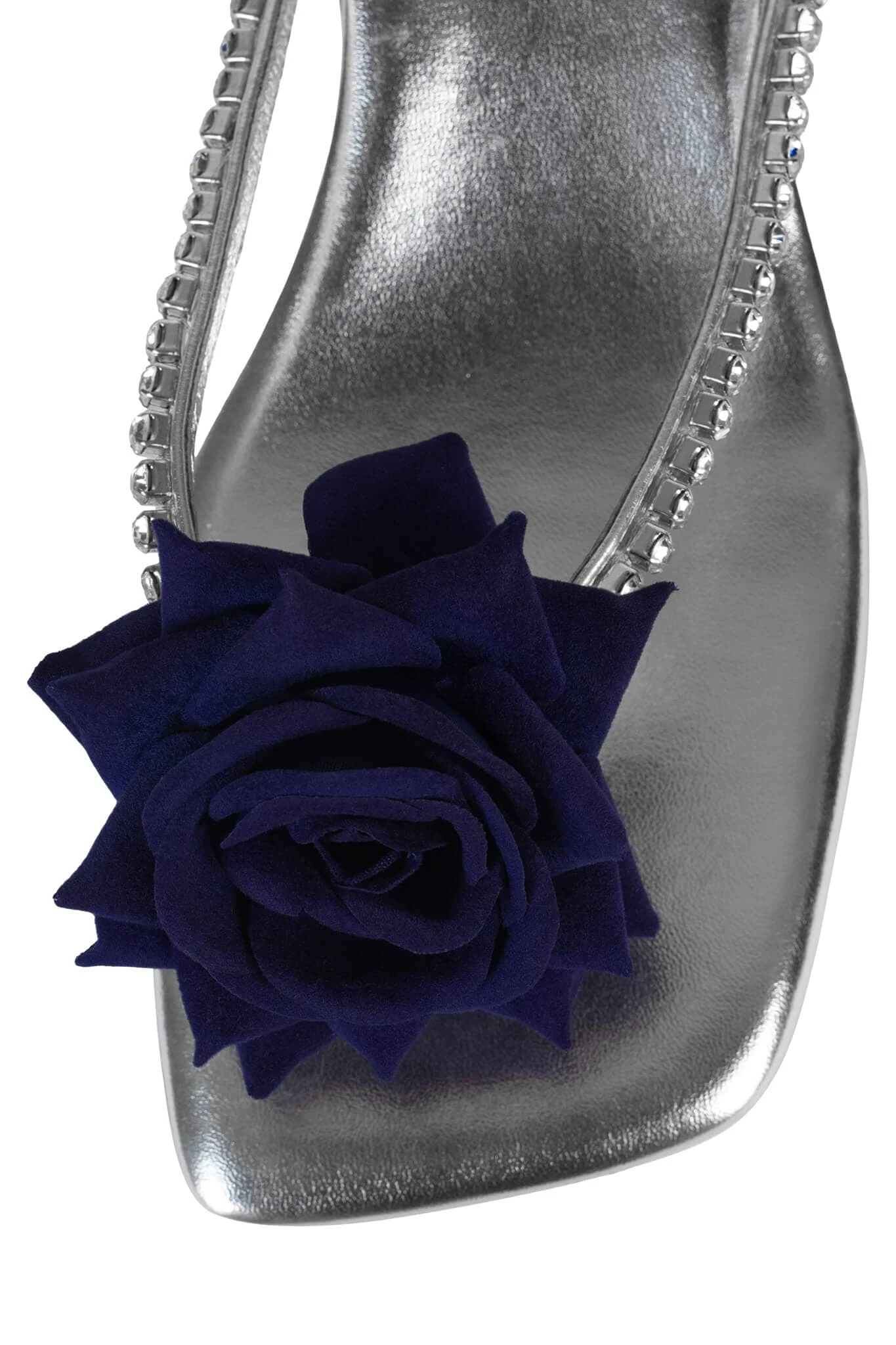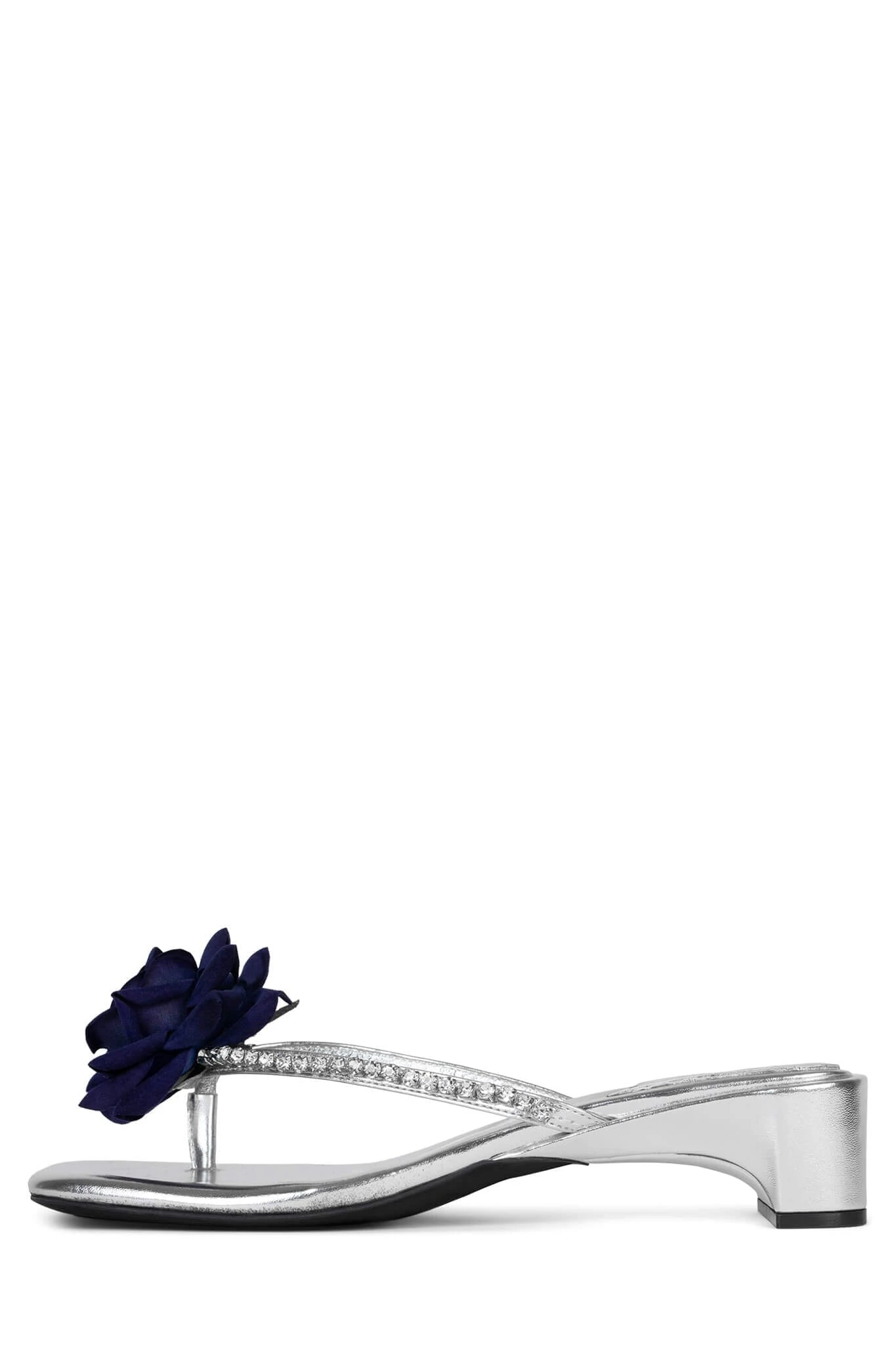 Sculpted kitten heel jeweled thong sandal with rose detail