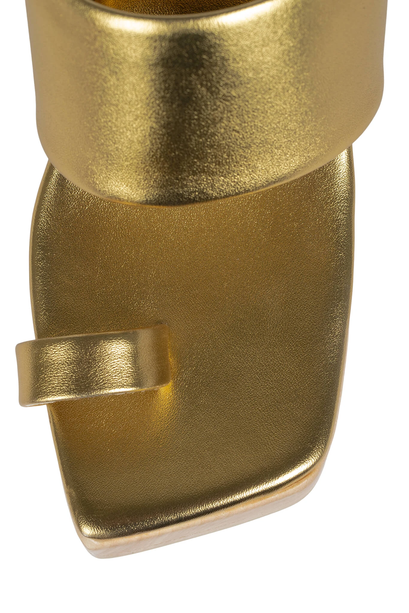 Platform sandal with toe-loop and cut-out wooden wedge