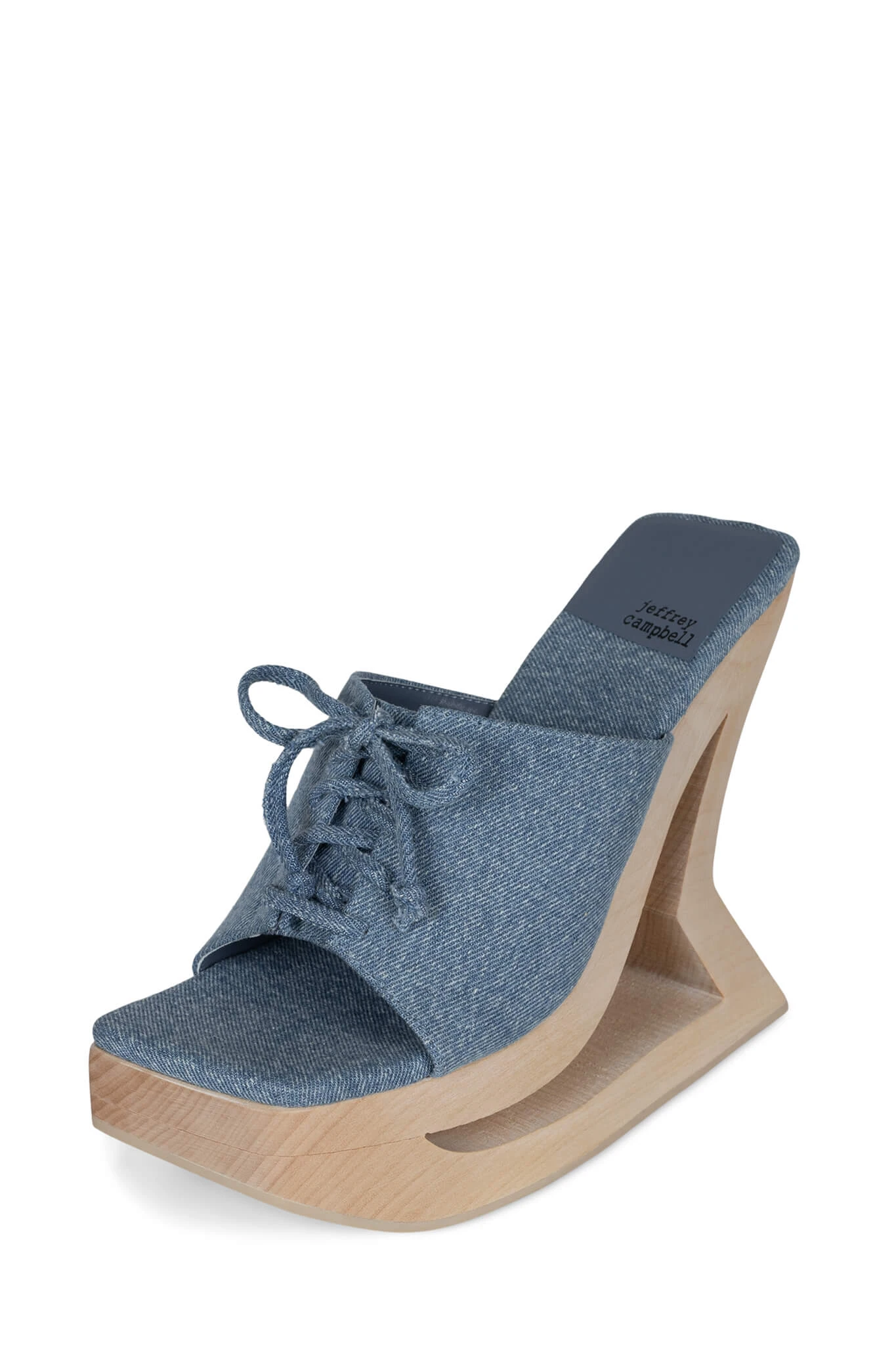 Platform sandal with lace-up detail and cut-out wooden wedge
